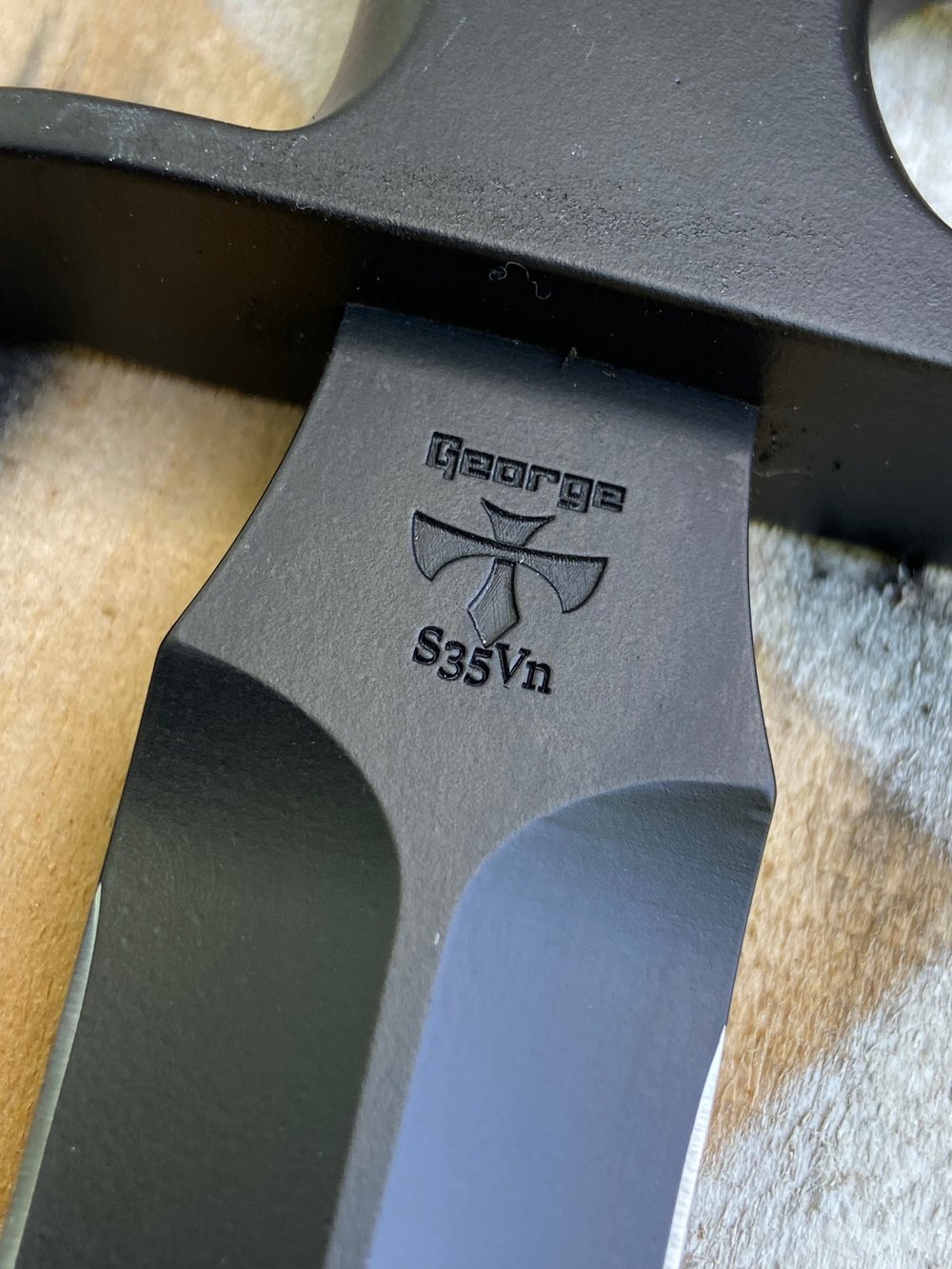 My latest version of the legend. Based on a handle cast by LF&C over 100 years ago, this handle is cast in brass and then I machine the internal features, laser engrave and tumble it all. The blade is hollow ground CPM S35VN (for this new batch) and the tang nut is titanium. Both of those are coated with Graphite Black Cerakoat.