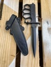 The black leather sheath is a high ride vertical or inline horizontal style made by our friends at Chattanooga Leatherworks